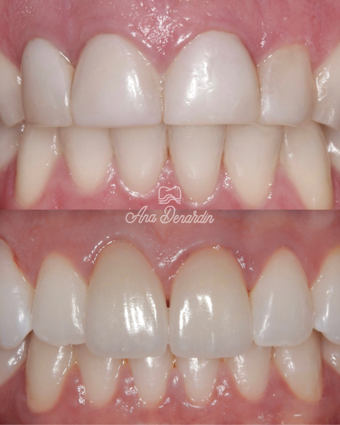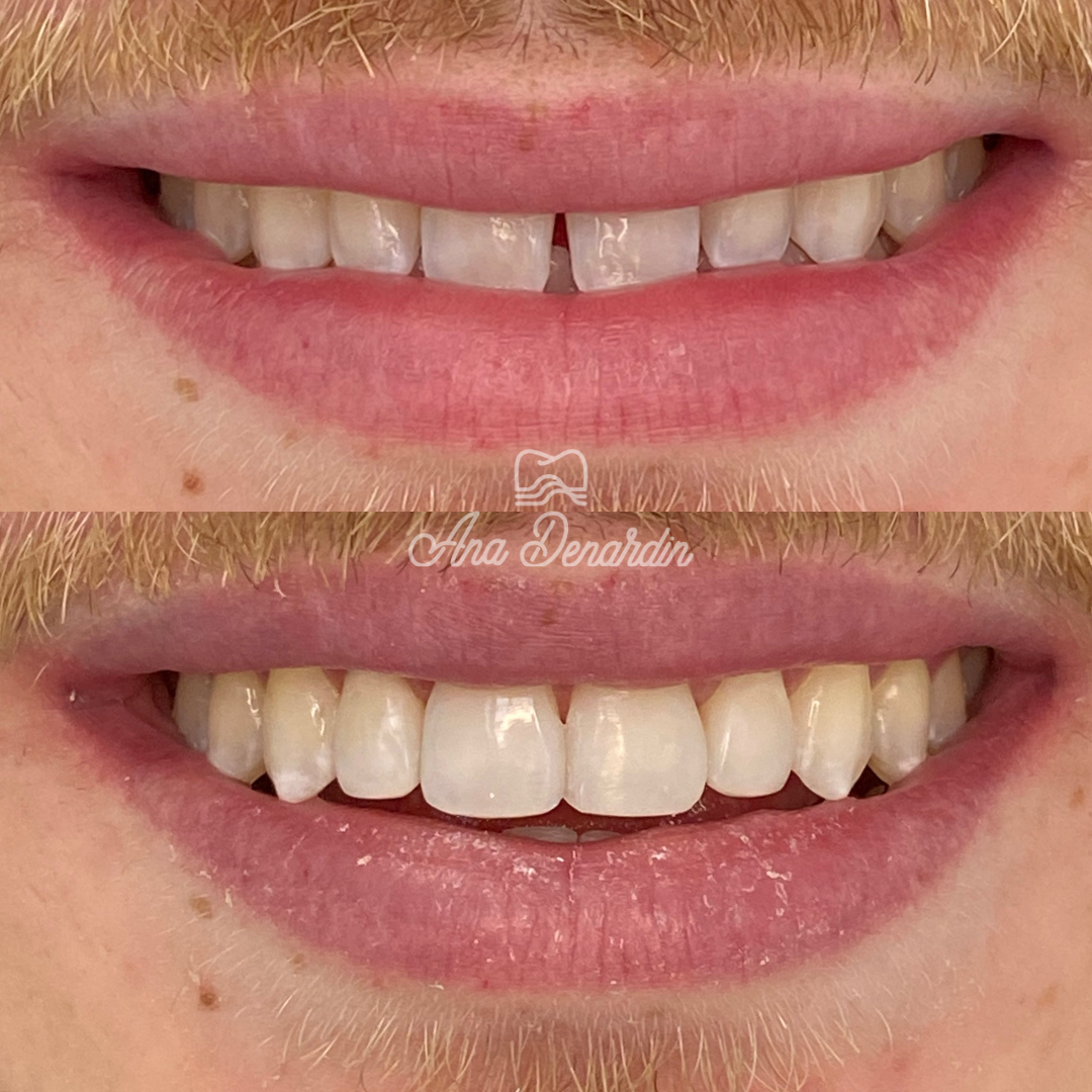 Técnica utilizada quando o paciente apresenta espaços entre os dentes ou deseja tornar seus dentes maiores. Tratamento realizado SEM desgaste do dente.